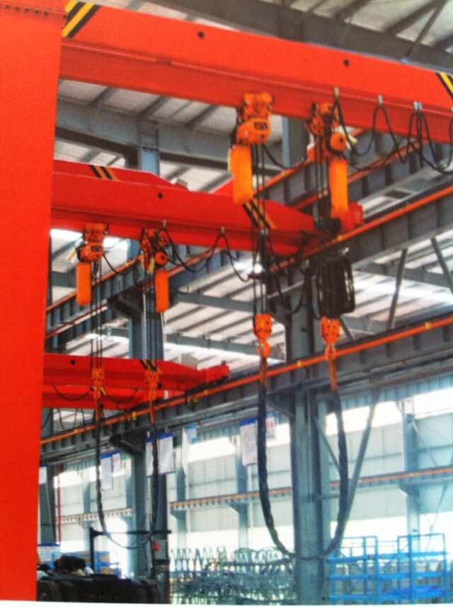 環(huán)鏈電動(dòng)葫蘆安裝使用:葫蘆單梁、橋式起重機(jī)、門式起重機(jī)、懸掛起重機(jī)上可以配單梁工字鋼使用,也可以配雙梁小車使用。因此,電動(dòng)葫蘆是工廠、礦山、港口、倉(cāng)庫(kù)、貨場(chǎng)、商店等常用的起重設(shè)備之一,是提高勞動(dòng)效率與改善勞動(dòng)條件的必備機(jī)械。